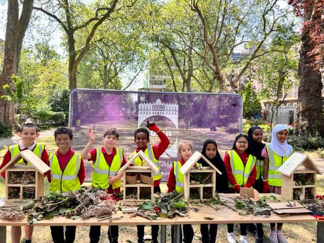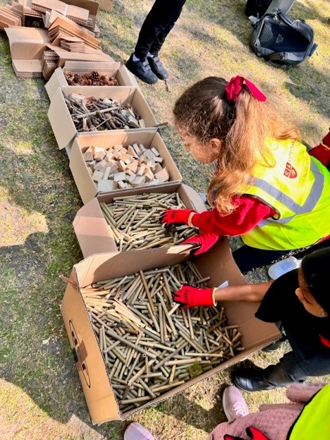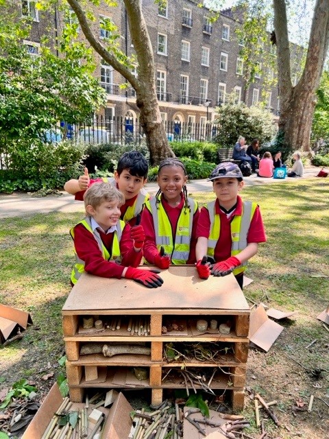 The hotels were filled with bamboo, cardboard, pinecones, twigs, scrap wood and leaves providing a home for beneficial insects that can help pollinate the plants around Copenhagen Primary Schools Garden as well as Woburn Garden Square.