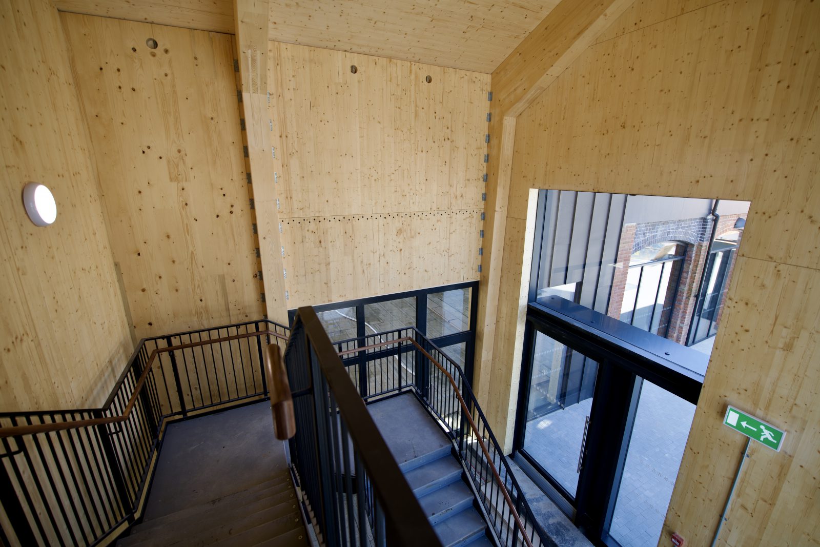 A CLT formed extension mirrors the form of the existing building adding 6,000sq ft to bring the whole scheme to 13,560 sq ft. Standing seam zinc cladding was installed to the CLT and Brunel Engine Shed Wycombe District Council Glulam structure of the new building to create an extension that expresses modern structural engineering in the same spirit that the Victorian building reflects its own era.