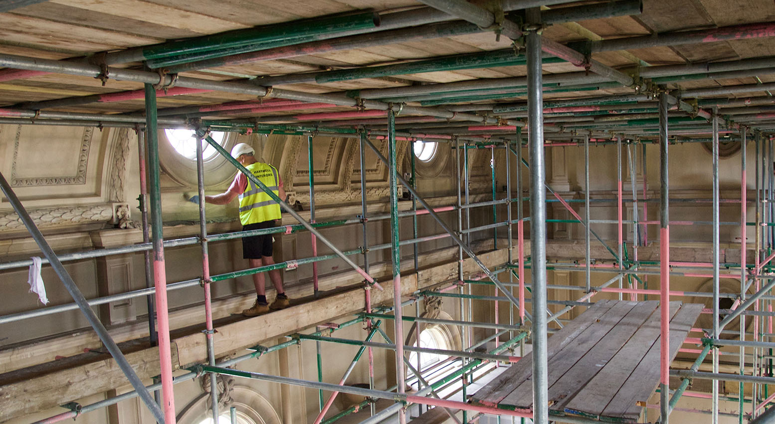 Quinn London was contracted to complete the internal refurbishment of the Founder’s reading rooms, and to return the rooms to their original setting. The project included cleaning and repairs to the ornate stonework, stone cornices, stone feature mouldings, and stone window surrounds. All the stone cleaning and repairs were sympathetic to the heritage of the building, and non-aggressive to ensure that the original patina of the stone was retained. The ornate ceilings, and walls, were cleaned back to their original finishes removing the build-up of dust and soot accumulated over the buildings 137 year history.