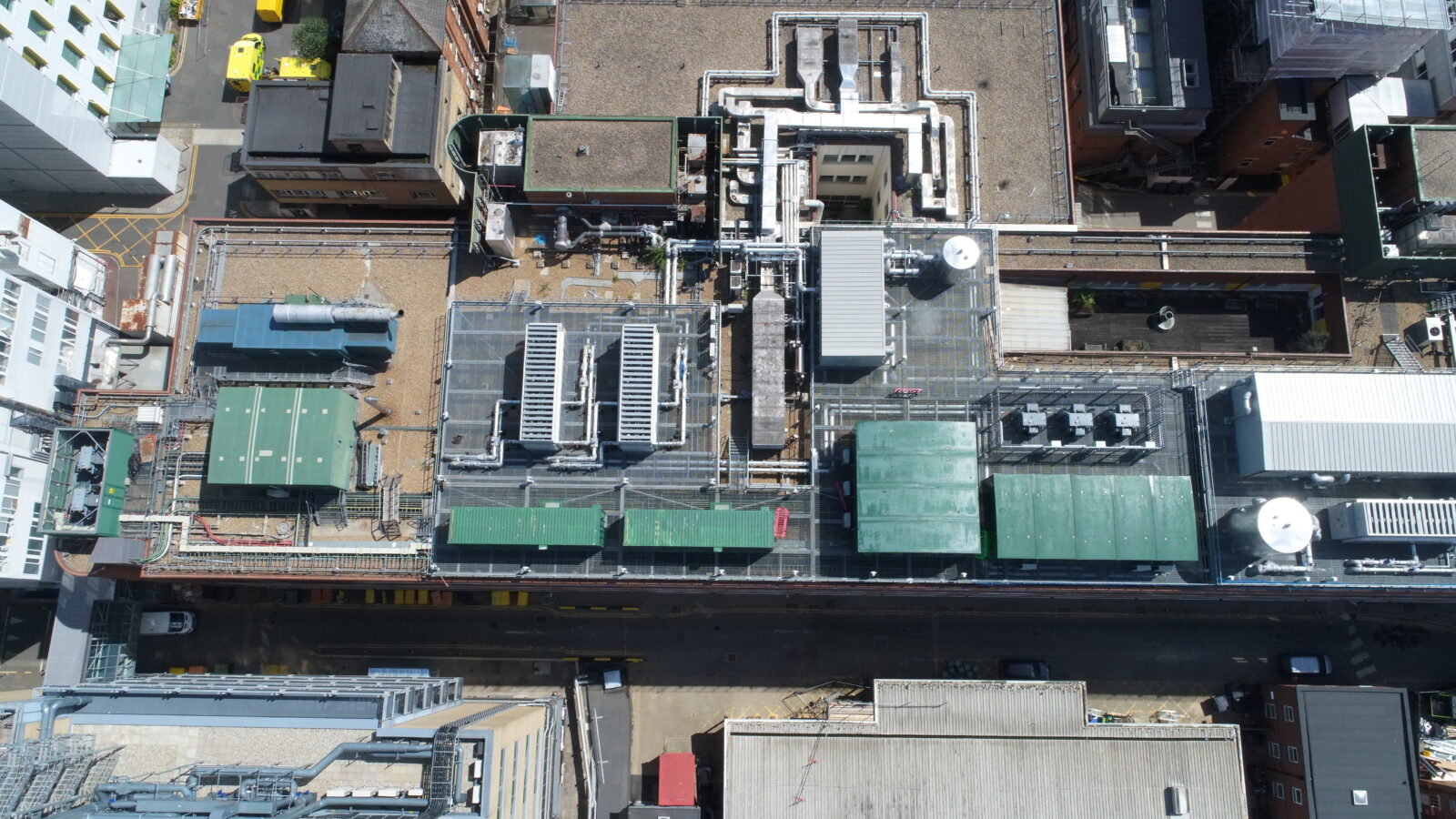 Delivering this project in a live hospital environment required careful planning and innovation. Each ASHP unit weighed up to eleven tonnes, demanding a specially designed steel grid to reinforce the roof and a complex dual-crane operation to lift the equipment into place. To maintain both patient and hospital staff comfort, temporary chillers ensured uninterrupted cooling during the transition phase of the works. Operating in sensitive areas such as operating theatres and imaging suites meant strict controls on noise, vibration, and dust. Our team worked closely with the Trust to adapt our permit-to-work procedures, safeguarding patients and staff while completing the works safely and efficiently.