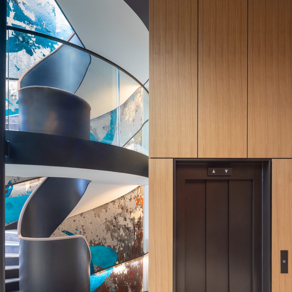 • The Staircase is free standing, self-supporting and was joined into the three gallery floors of the existing building