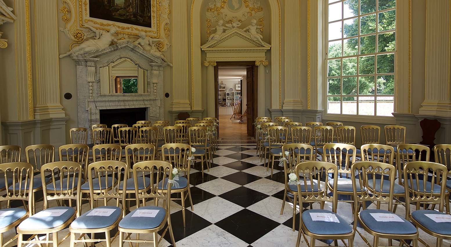 During the restoration of the Octagon Room, Quinn discovered substantial damage to both the internal historic fabric and external envelope of the building, despite the previous restoration of the roof. The external envelope required careful brick and stone restoration using salvaged period bricks and stone indents, as well as matching mortar colors and pointing methods. A large scaffolding was erected within the structure to stabilize the historic plasterwork, which was badly cracked and damaged. The internal plaster was then restored using lime mortars and hessian in place of horse hair. Once the plaster repairs were complete, specialist decorations, including gilding of the detailing, were carried out. Electric lighting was renewed to highlight the internal areas, including the newly formed copy of the original centre-piece chandelier, the internal fan coil units for heating, joinery-made heater casings, and the renovation of three existing large sash windows. One new window was also made, and a previously blinded window opening was opened up. Finally, restoration of the white and black marble tiled flooring was completed.