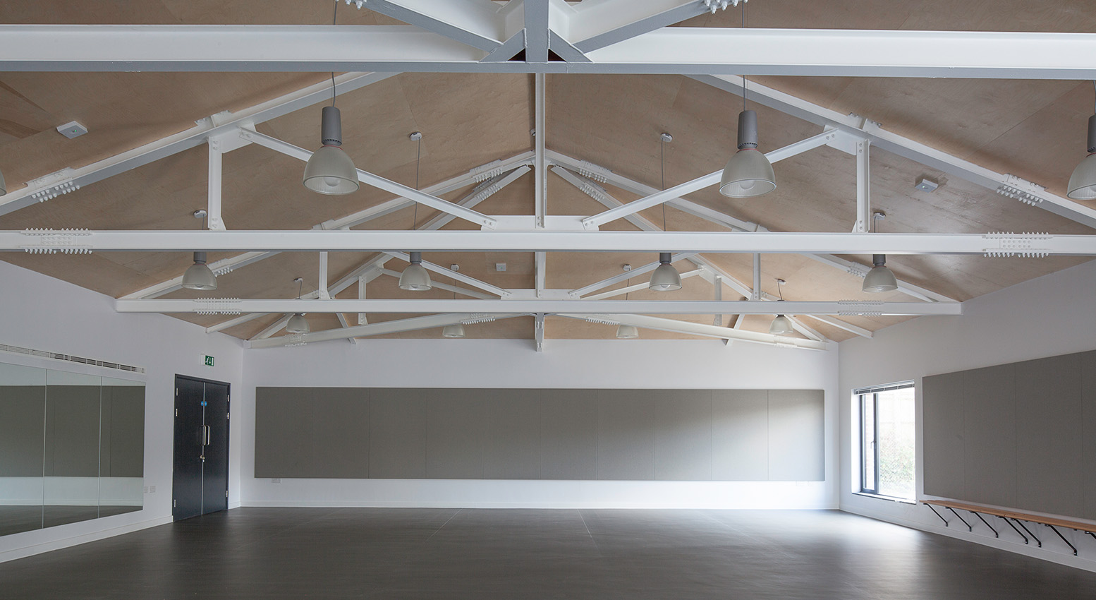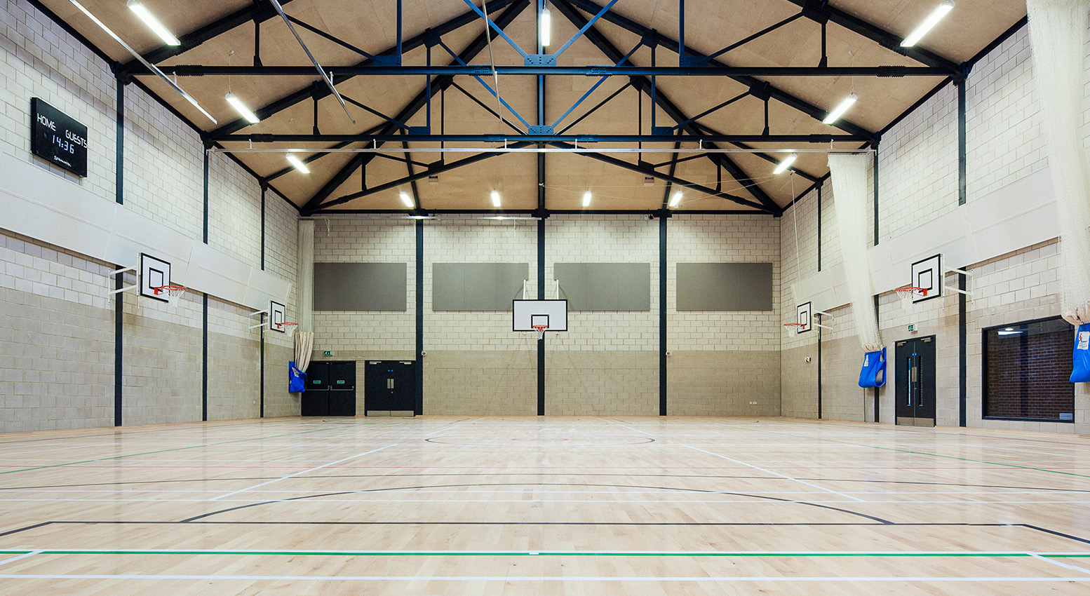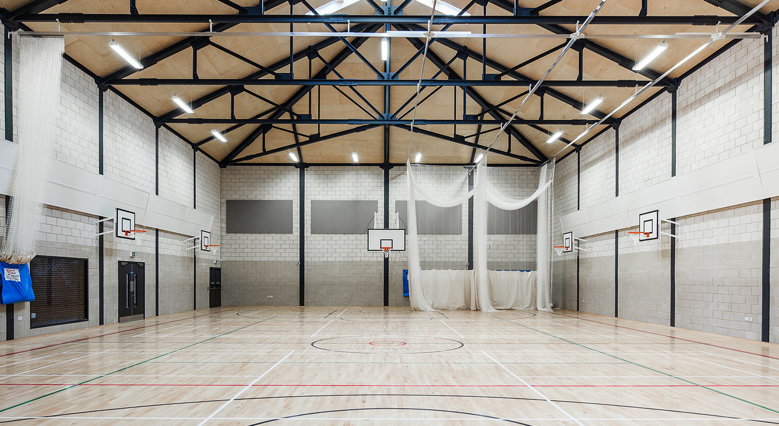 In order to save time and cost on the sports hall we implemented an innovative technique to support the flooring. Instead of using a traditional screed method, the design team decided to use structural slabs and cradles to support the flooring. Implementing this technique not only benefited the build by reducing time and cost it also caused a better spring to the sprung flooring. Helping to protect users from physical wear and tear.