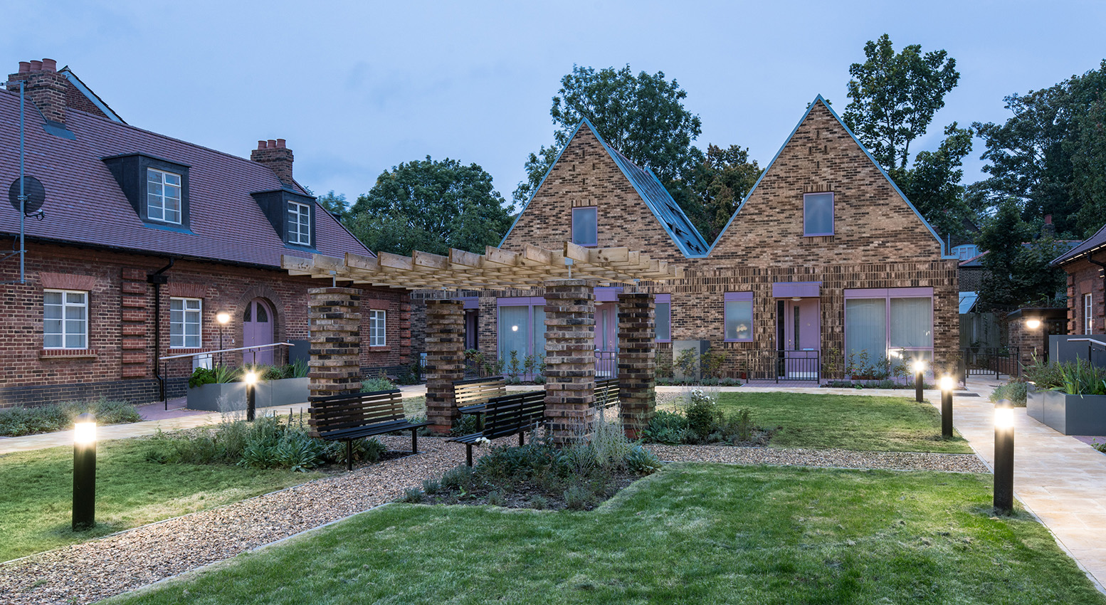 Internal refurbishment works included updating living rooms, bedrooms, bathrooms, and kitchen units. External works included the creation of a spacious communal courtyard, linking the individual apartment gardens, and providing a new disabled access entrance to the site. Bike stores, bin stores, and a maintenance shed were also added.