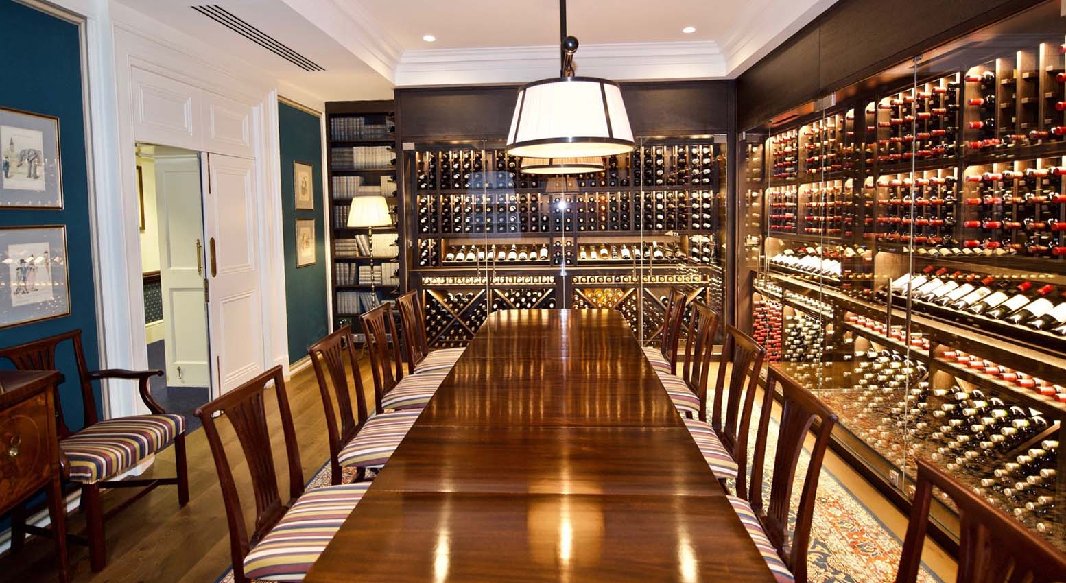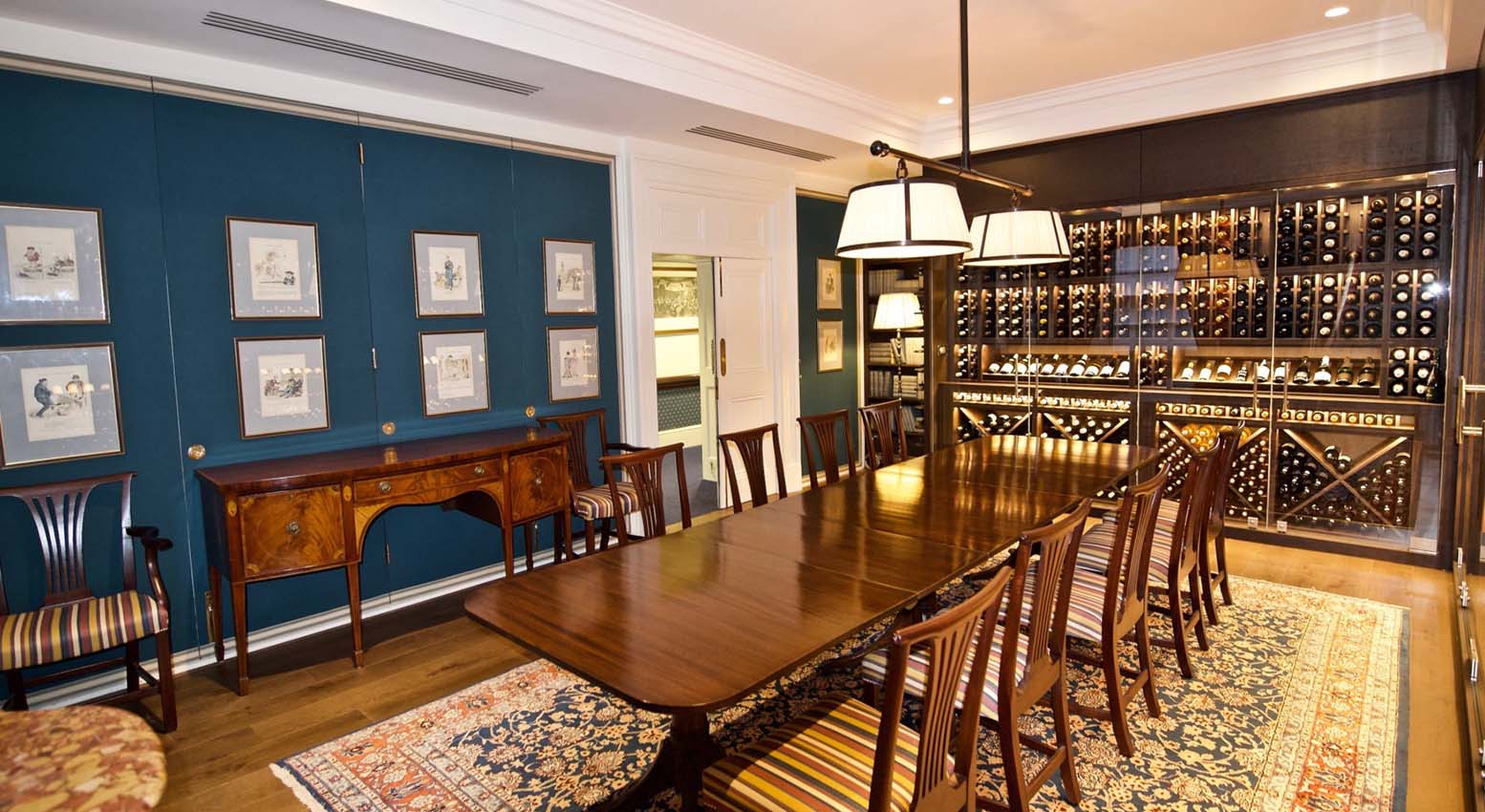 Quinn (London) Limited, also known as QLL, was tasked with converting a former library into a wine room at the Carlton Club. The scope of works included demolition of the existing structure, installation of suspended ceiling systems, full mechanical and electrical upgrade, internal redecoration, and restoration of windows, doors, and skirting boards. Additionally, the project involved alteration and landscaping of the rear terrace.