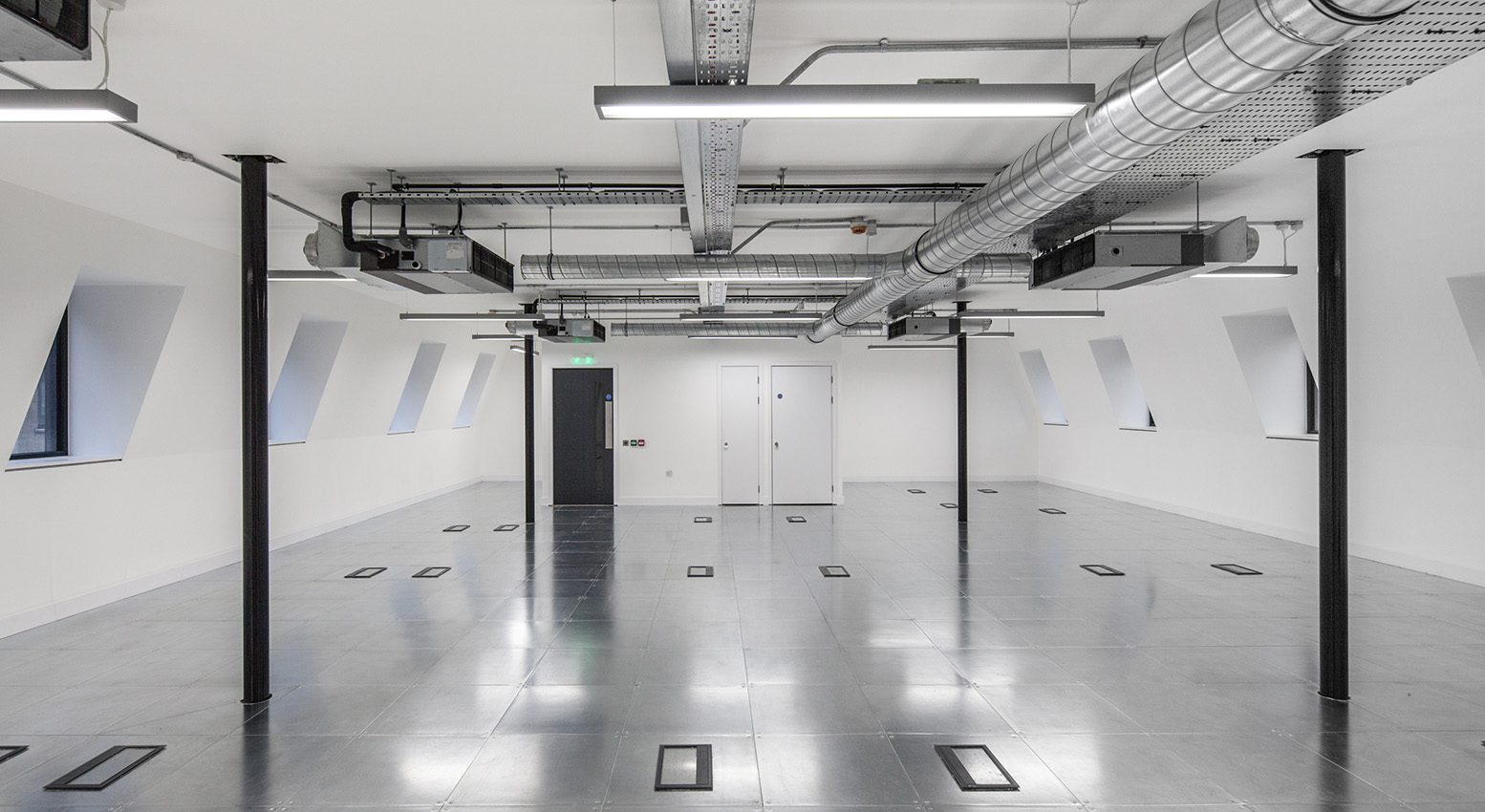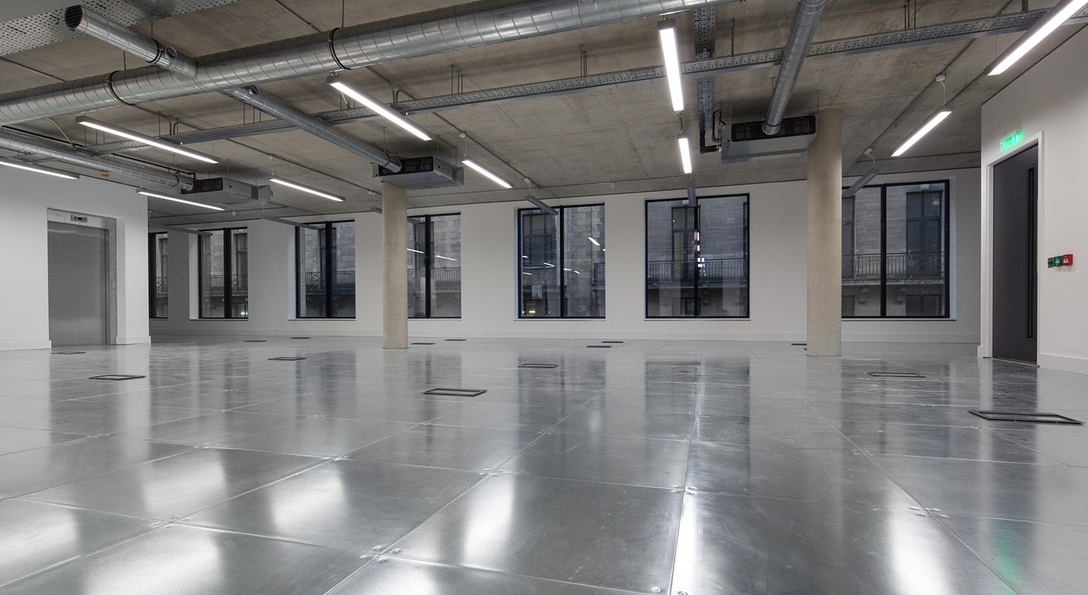 Internally, all communal areas have been given a polished and professional finish, with decorated walls and suspended ceilings that create a warm and welcoming atmosphere. The floors are finished with either resin or stone, which not only add to the aesthetic appeal of the space but are also easy to clean and maintain. The commercial areas of the building are fitted with a raised floor, which provides additional space for the necessary air conditioning, lighting, and mechanical services, while also allowing for greater flexibility in the arrangement of the interior spaces.
